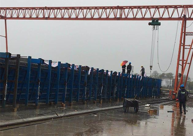九時左右,隨著現場負責人一聲令下,鞭炮齊鳴,首片箱梁開始澆筑,后續工作進展順利,拉開了中山大道梁板預制序幕。從現場工作人員處獲悉,本次預制系邊跨中梁,將用于中山大道跨白澤湖1號橋,該橋全長5跨160米,紅線寬60米,所需箱梁共100片。