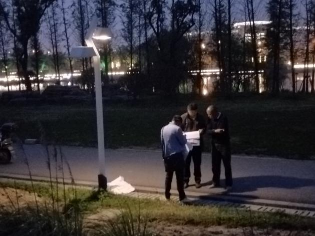 夜幕降臨,新河景觀公園路燈下,曹義兵召集現場管理人員對當日工作情況進行匯報,并對照施工方案進行進度檢查核對,再三確認后,曹義兵示意一行人對當日完工質量進行現場盤查。