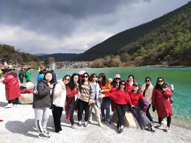 3月5日早餐后乘車去麗江,今日的行程中讓大家激動的是“玉龍雪山”。玉龍雪山,索道全長2914米,垂直高差1150米,是我國海撥最高的旅游客運索道之一。隨著纜車緩緩上升,從青蔥翠綠跨到白雪皚皚,一直到達山頂,仍能依稀看到一些生命力頑強的植被。到達纜車站點后,我們幾個人向觀光臺走去,剛一腳邁出戶外,迎面而來的是巨大的狂風,仿佛將要被吹走,我們既害怕又想邁出步伐去探究雪山的世界,想在大自然鬼斧神刀的雪山上留下我們的“足跡”。于是幾個人手拉著手,一步步的踩著厚厚的積雪走向“4506”的柱子旁拍了張照片,然后便瞬速的撤回了游客集散中心。玉龍雪山山頂留下的印象是“好冷”、“好大的風,似要把我吹走了”、“雪好厚”;因受當天天氣的原因,玉龍雪山的頂峰棧道關閉,我們也沒有感受到頂峰的獨特風景。