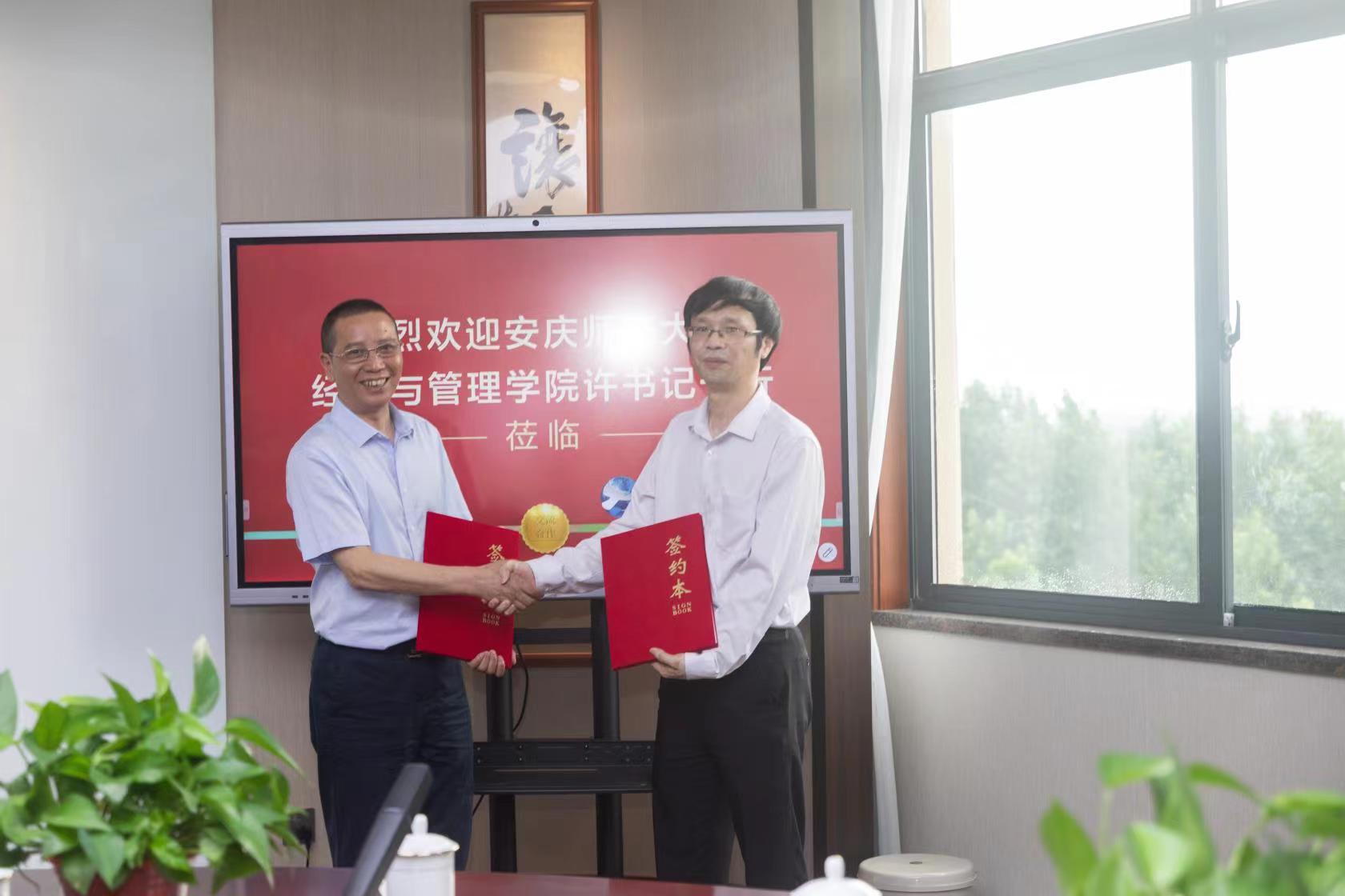 2022年6月30日上午,安慶師范大學經濟與管理學院黨委書記許俊杰、副院長黃先軍、副書記周毅一行與我司副總經理張勤飛、經營中心總監彭芳以及升弘公司副總經理查顯麗就校企合作事宜進行交流。雙方在經過深入了解之后達成一致,隨后,張總與許書記在集團總部圓桌會議室簽訂了校企戰略合作協議。