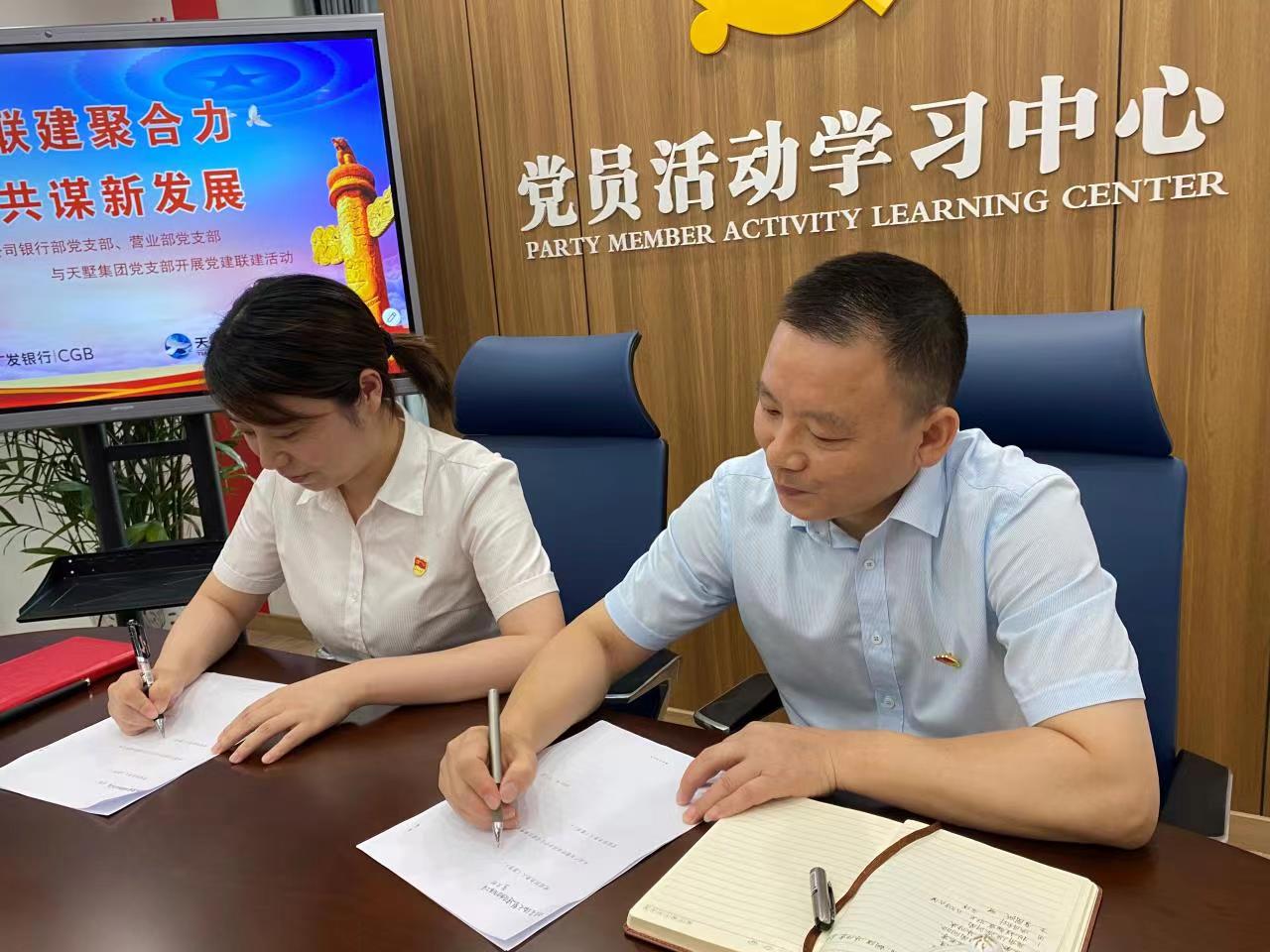 2021年9月4日下午,天墅建設集團有限公司黨支部與廣發銀行安分行公司銀行部黨支部、營業部黨支部在公司黨員活動學習中心共商黨建共建事宜。