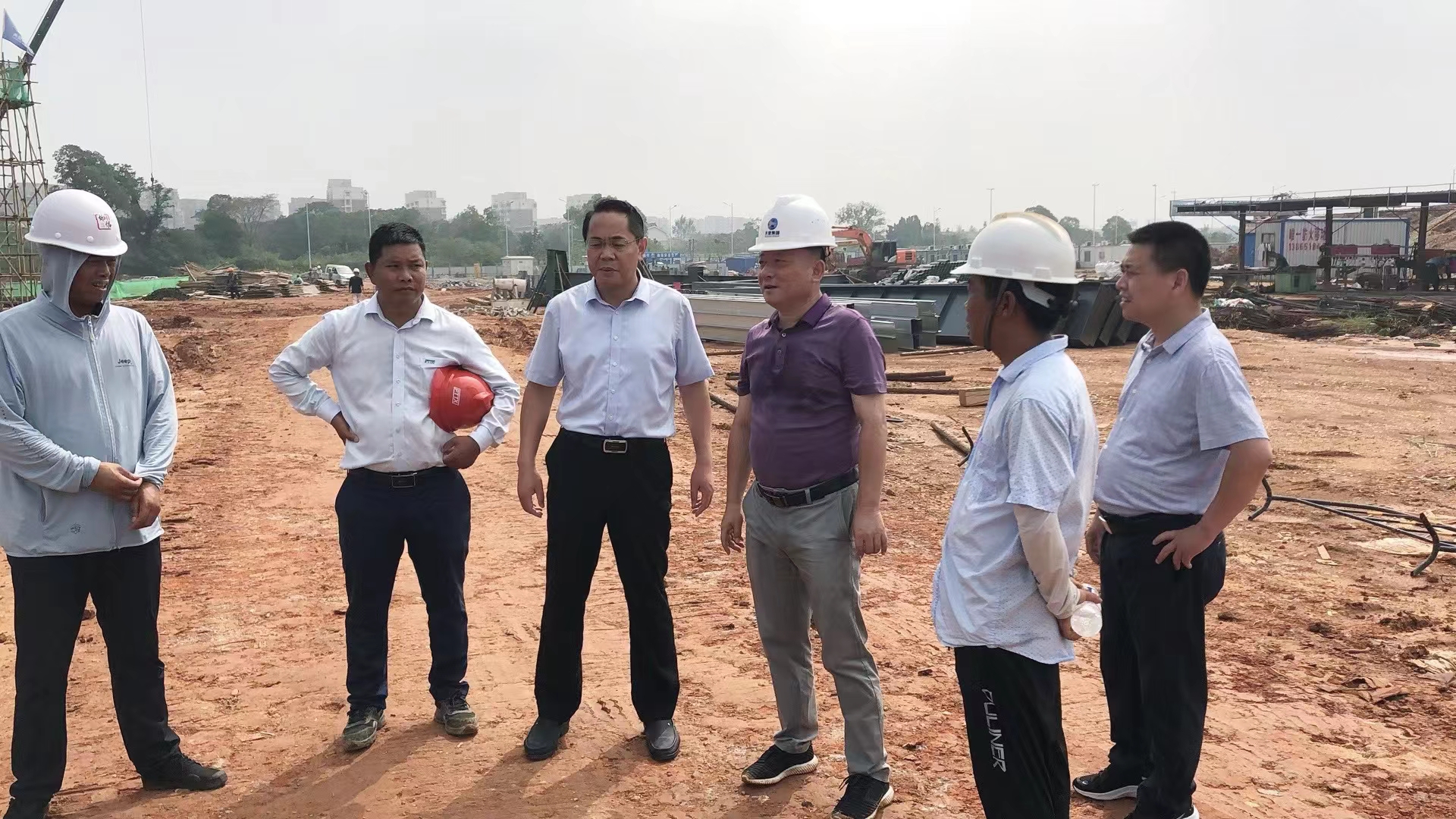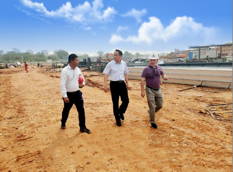 2022年7月30日上午,安慶市大觀區區委書記潘功發一行在我司董事長朱仲飛的陪同下,再臨公司目前正在施工的新普電氣項目施工現場。