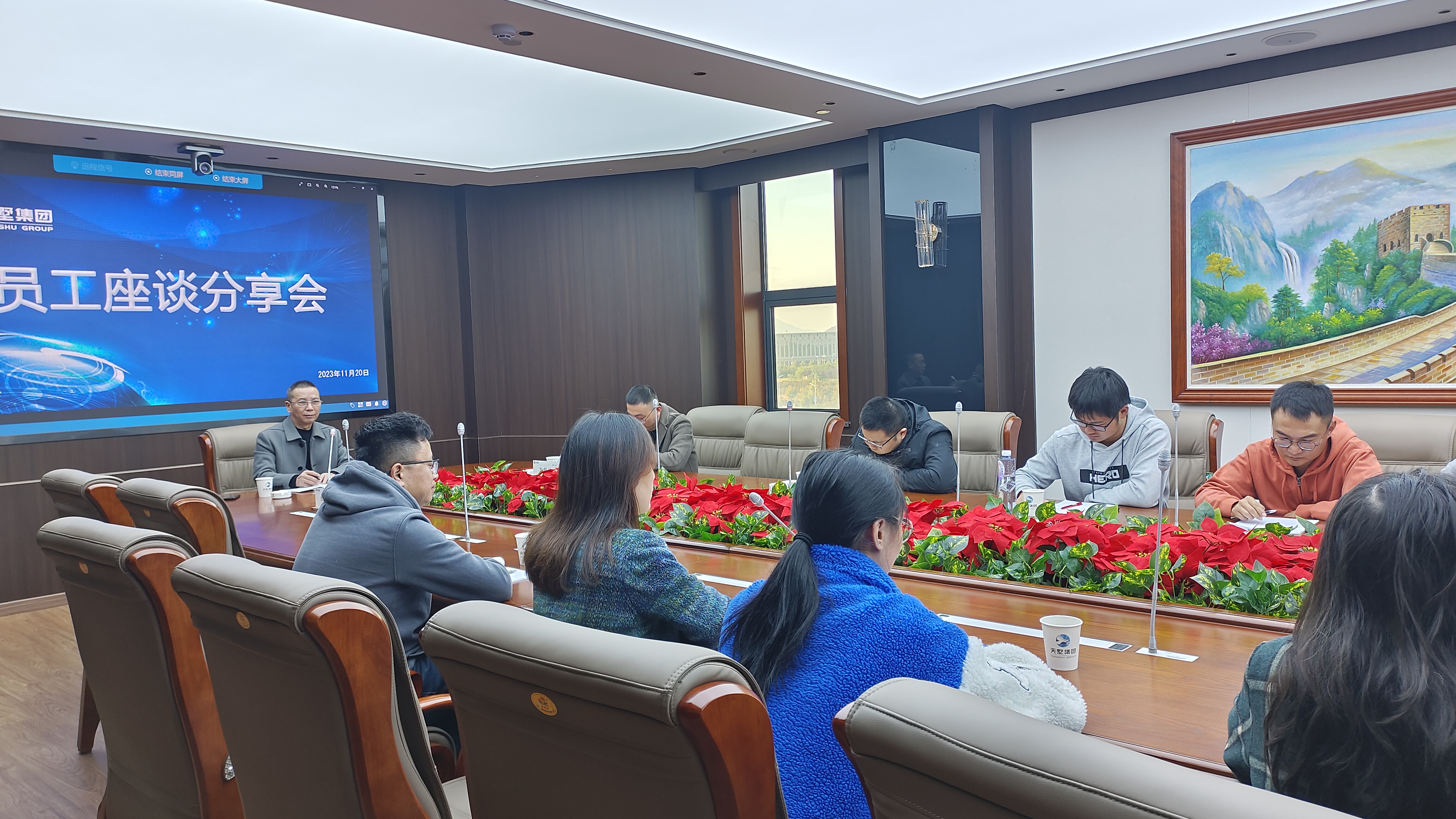 暢所言、心連心。為幫助員工更好地了解公司的基本情況,更好地融入新環境。2023年11月20日,由行政部副總經理張勤飛牽頭,天墅集團在總部七樓中會議室舉行員工內部座談會,共16名員工代表參加了此次座談會。