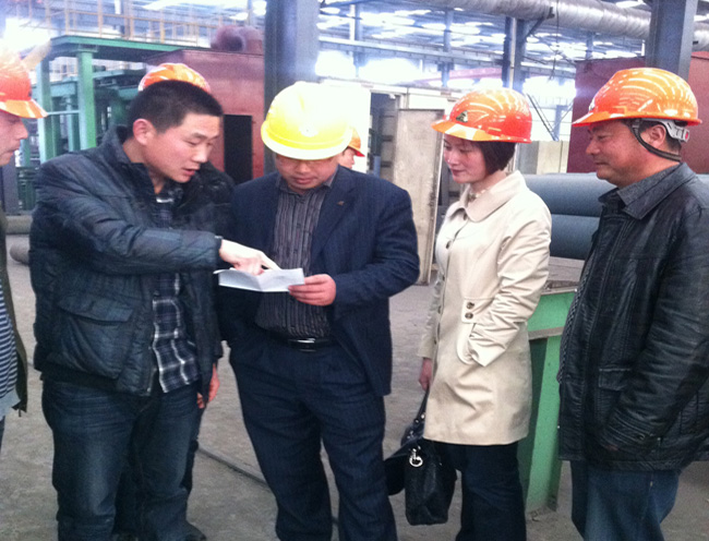 314,朱總在項(xiàng)目經(jīng)理洪年豐的陪同下,偕同淮北市段園工業(yè)集中區(qū)紀(jì)委王海洋書記、孟部長、徐州設(shè)計(jì)院紀(jì)主任、東大監(jiān)理公司任總監(jiān)以及天匯投資有限公司董事長等一行,親赴多家鑄管生產(chǎn)企業(yè)進(jìn)行考察,并結(jié)合工程要求,詳細(xì)了解了離心球墨鑄鐵管的強(qiáng)度、延伸度以及抗腐蝕性等性能指標(biāo)。