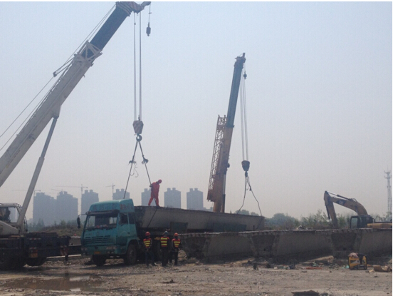 412932分,伴隨著鞭炮齊鳴,禮花綻放,我公司承建的S228安慶至樅陽改建工程(潛江路三期)長楓港橋第一片20米箱型梁平穩、準確地安設在支座上,正式拉開了此次梁板架設的序幕。