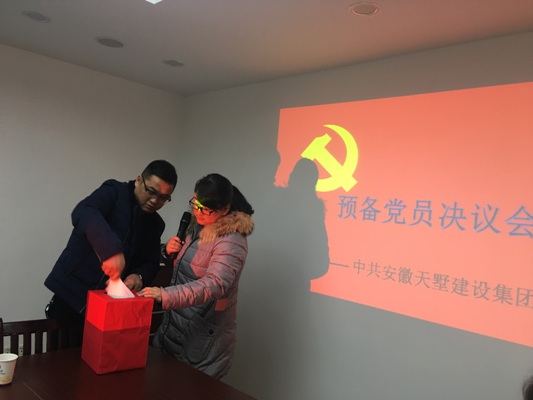 20161229日下午,天墅集團黨支部預備黨員決議會議在天墅集團黨支部隆重召開,討論審議吸收張義、谷同伍兩名同志為中共預備黨員的事宜。市黨建指導員陳臘平同志、經開區黨群部方華桐同志、王自知同志應邀出席了本次會議,天墅黨支部13名正式黨員及公司入黨積極分子參加此次會議,會議由集團黨支部書記張思霞同志主持。