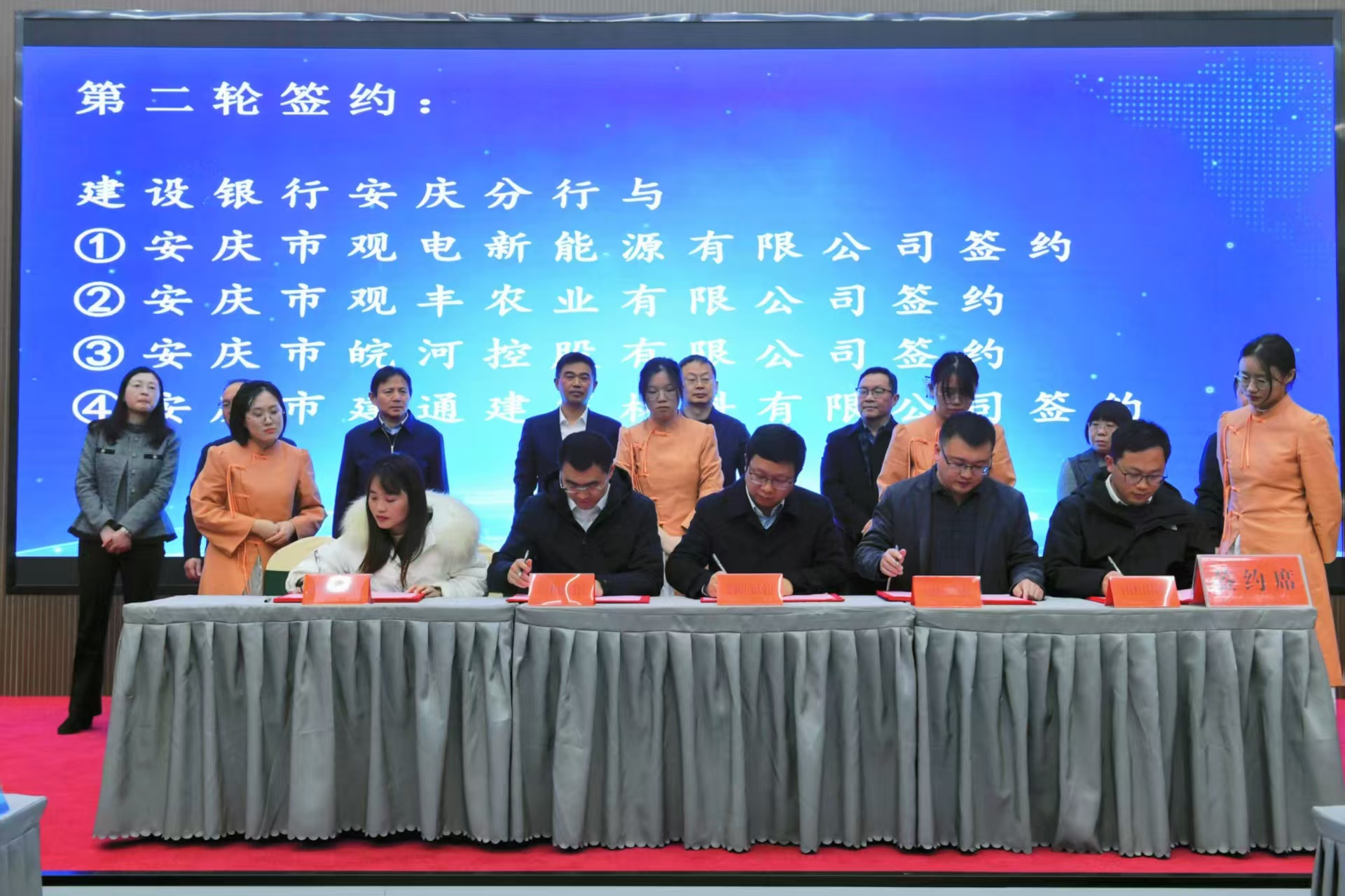 會上,大觀控股、皖河控股、區財政局(金融辦)分別就重點融資項目及區屬民營企業融資項目進行路演推介。招商銀行、建設銀行、徽商銀行、交通銀行、浦發銀行、興業銀行等12家金融機構分別與大觀區相關企業簽訂合作協議或貸款融資協議。安慶建通材料有限公司與建設銀行安慶分行簽訂了合作協議。